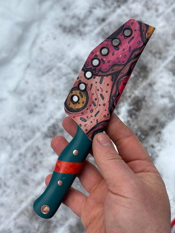 Scales are teal paper micarta from gcarta with an orange Juma gem spacer on butter scotch liners with copper hardware.