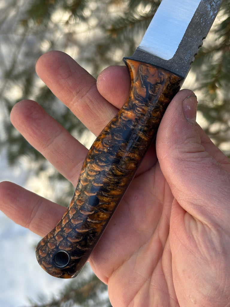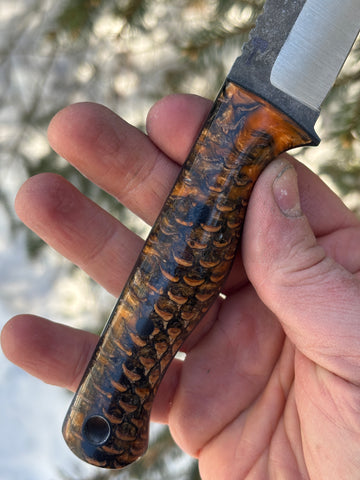 Scales black and orange pinecone resin scales with black liners and hardware.